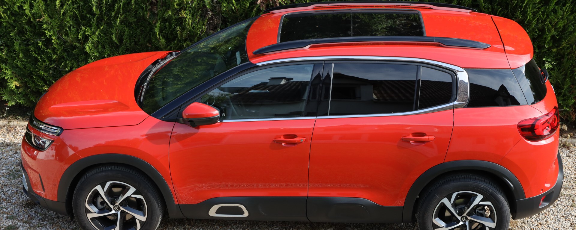 En tant que journaliste du patrimoine et passionné de longue date de la marque Citroën, j’ai obtenu le prêt d’un SUV C5 AirCross PureTech 180 S&S EAT8 Shine, le temps du week-end du 5 au 8 juillet 2019. Dès 8 heures, le vendredi 5 juillet, mon assistante et moi nous présentons au poste de garde à l’entrée du gigantesque site de production PSA de Poissy, véritable ville dans la ville avec ses 86 hectares. Nous découvrons le superbe SUV rouge volcano qui va nous être prêté : boîte automatique à 8 rapports de vitesse, 180 CV, essence. Il est nécessaire de passer par une petite formation, ne serait-ce que pour faire démarrer la bête : plus de clé, mais un accès et démarrage main libre, grâce auquel on peut verrouiller, déverrouiller et faire démarrer la voiture en gardant sa clé dans sa poche. Il suffit de passer la main derrière la poignée pour déclencher l’ouverture, et pour le démarrage, on appuie simplement sur la commande START/STOP.
