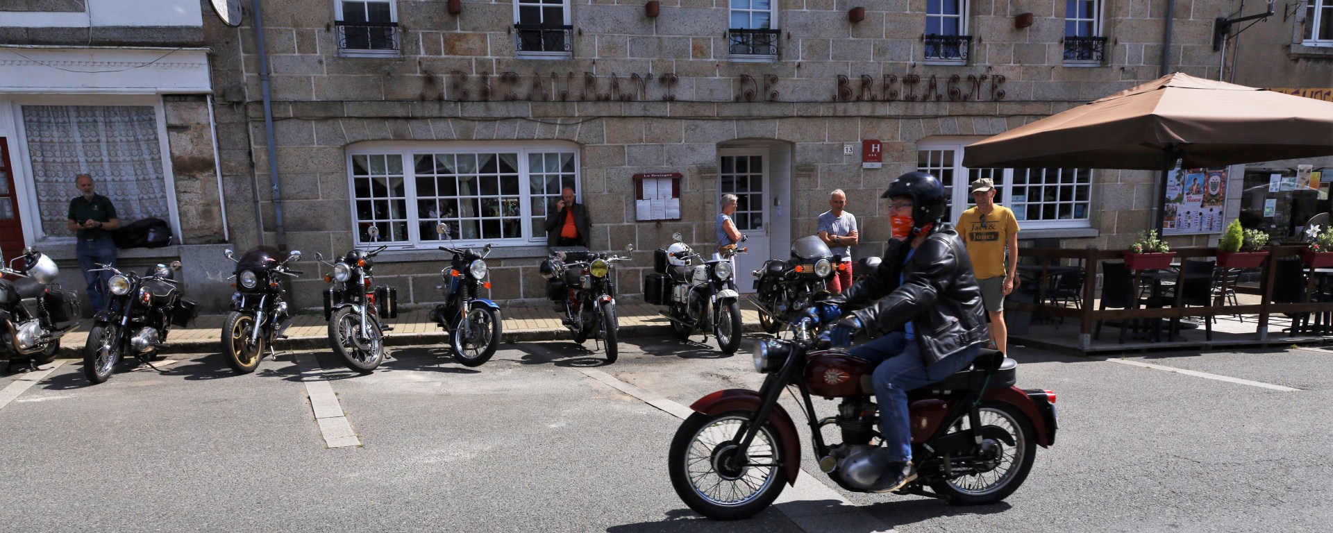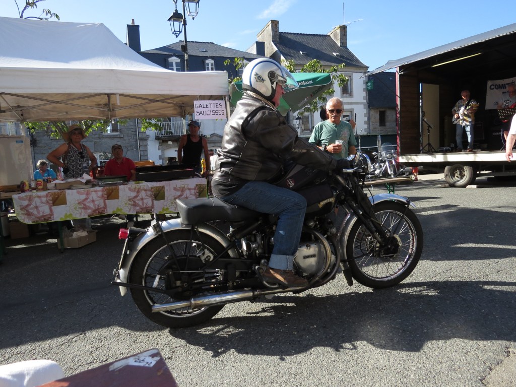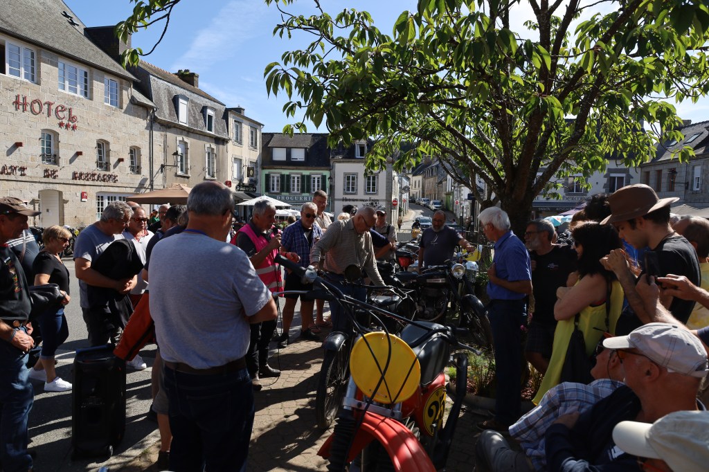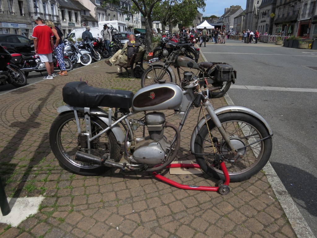Du 19 août au 9 septembre, le G.A.V.A.P.-Moto organise la 17ème édition du tour de France à motos anciennes (avec incursion en Allemagne et Belgique) comptant, cette année, 19 étapes, 49 motos et plus de 70 participants. La date de première mise en circulation des motos engagées doit être inférieure à 1954 (ou 1959 pour les pilotes femmes et les couples). Dans chaque ville d’étape, les motos anciennes sont exposées, pour le plus grand bonheur des amateurs. Ce 22 août, c’était au tour d’Huelgoat d’accueillir l’étape du jour.