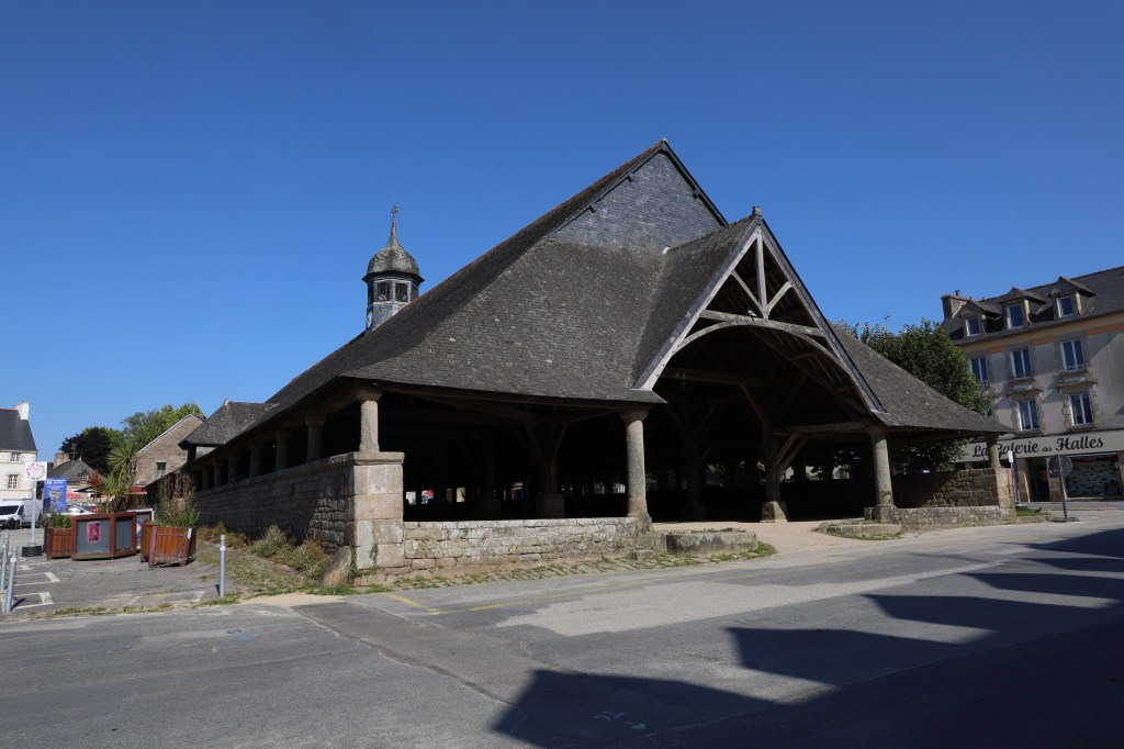 Attestées dès 1542, mais certainement antérieures, les halles situées sur la place du bourg (la place Plantée) sont remarquables à la fois par leur taille (avec leurs 940 m2, ce sont les plus vastes de Bretagne), par leur ancienneté (elles sont classées aux Monuments historiques depuis 1914) et par leur esthétique. Elles sont couvertes d’une vaste toiture reposant sur de petites colonnes de granite posées sur un mur bahut à l’extérieur et sur de robustes piliers de bois à l’intérieur.