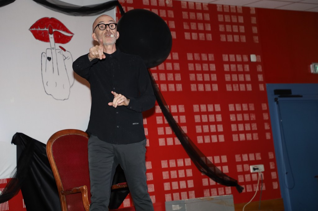 Entre deux numéros, Odile la Bretonne, qui se vante à juste titre d’être la championne des mauvaises langues, interpelle les convives.