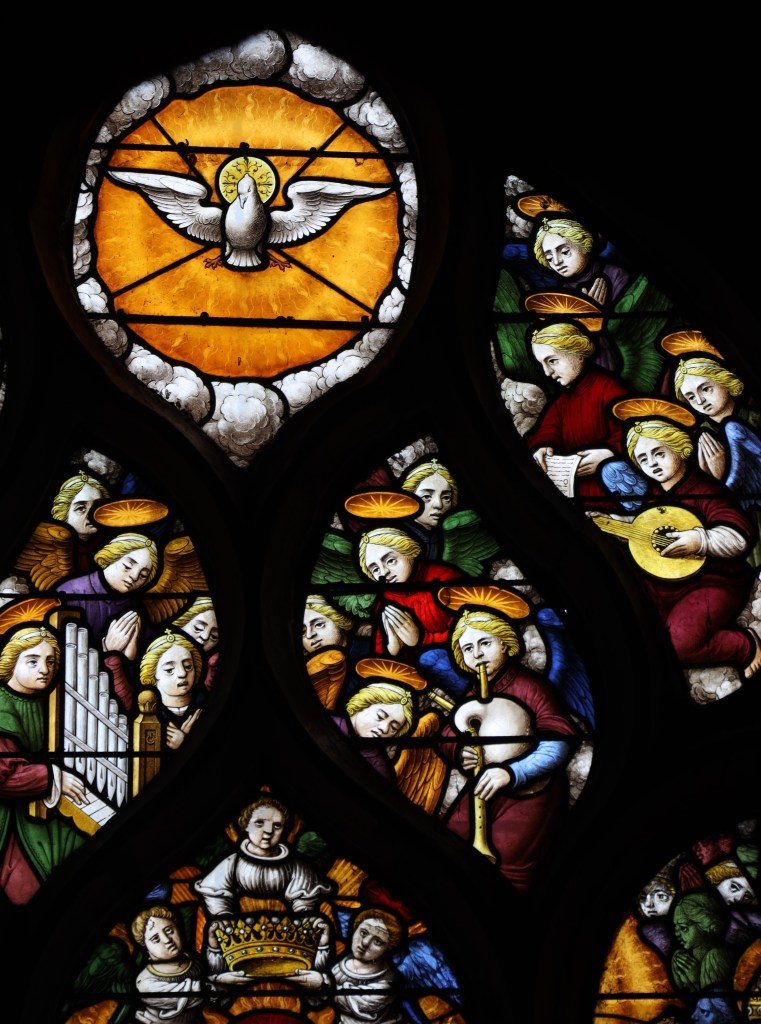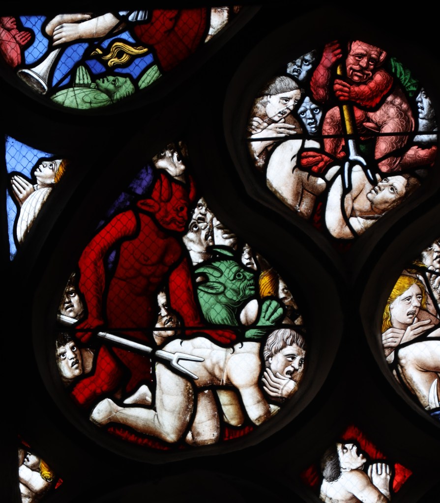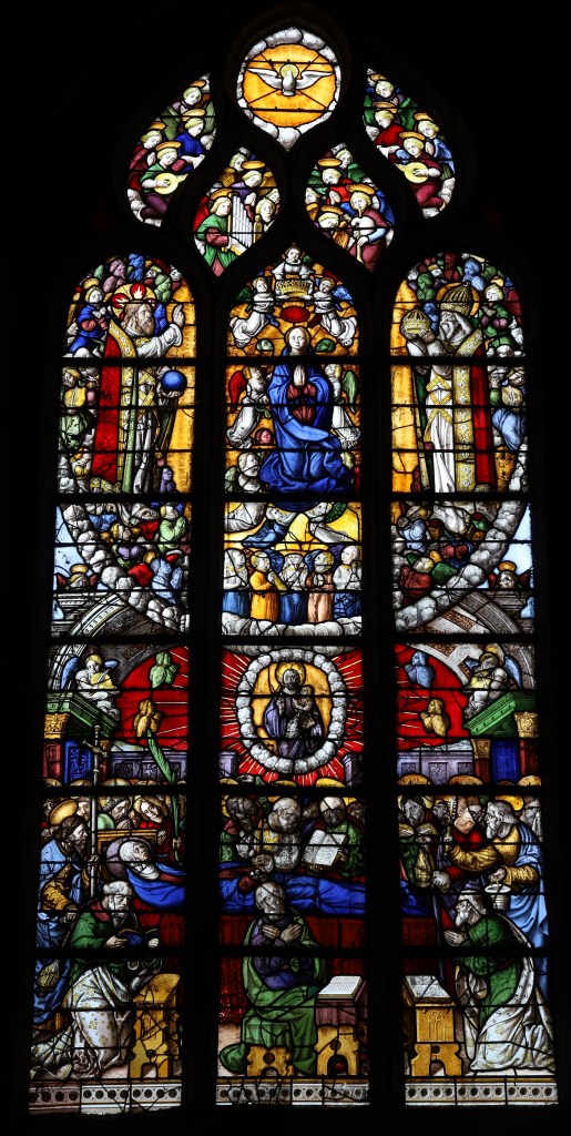 Transept sud : vitrail de la Dormition et du Couronnement de la Vierge (vers 1540)