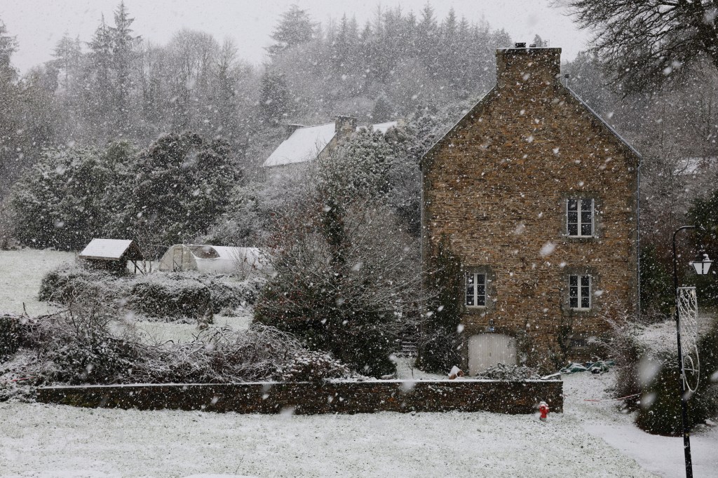 Le lundi 5 janvier 2026, il a neigé à gros flocons sur Saint-Herbot. La neige a commencé à tomber un peu avant midi, pour s’arrêter en milieu d’après-midi, étalant partout un beau manteau immaculé.