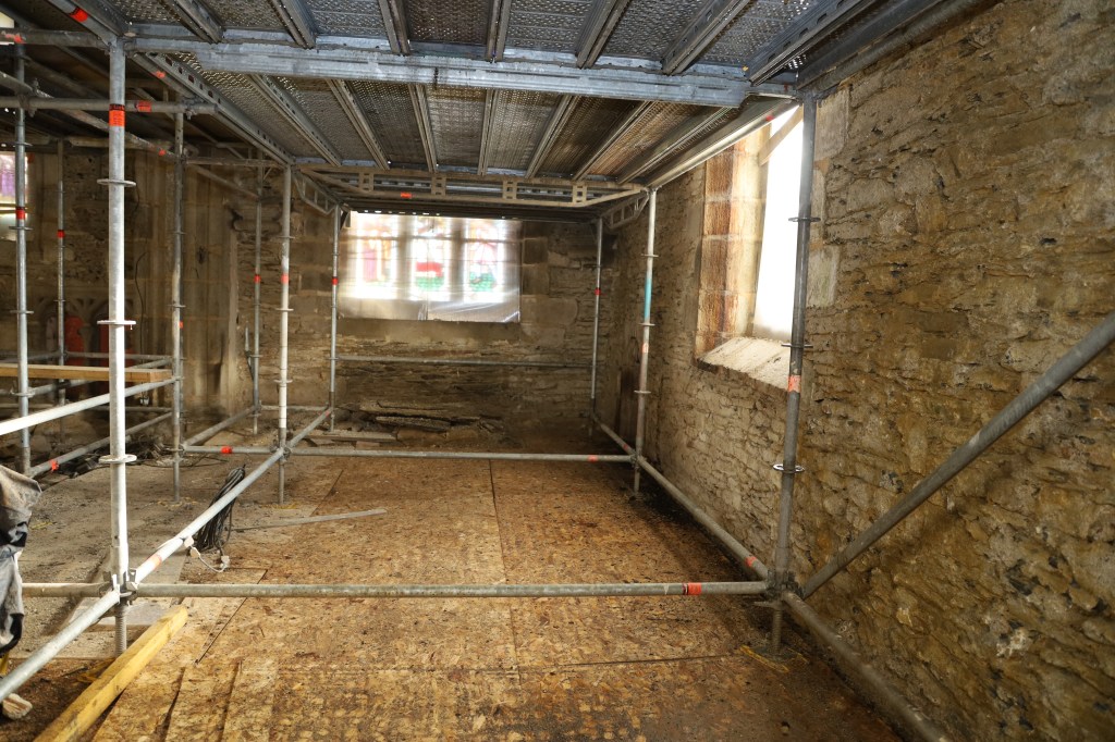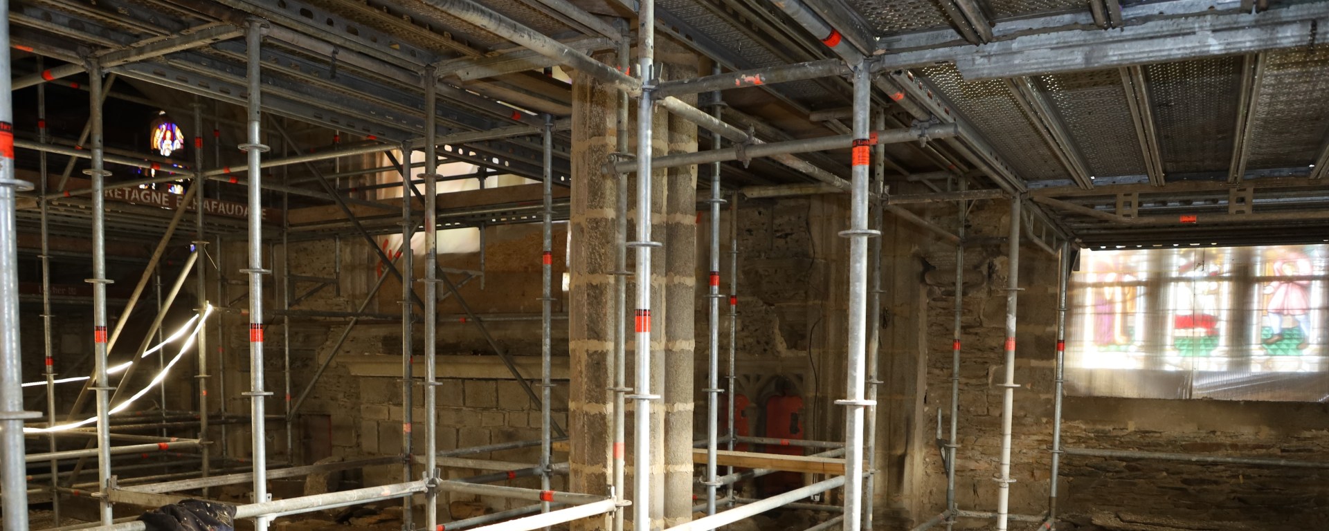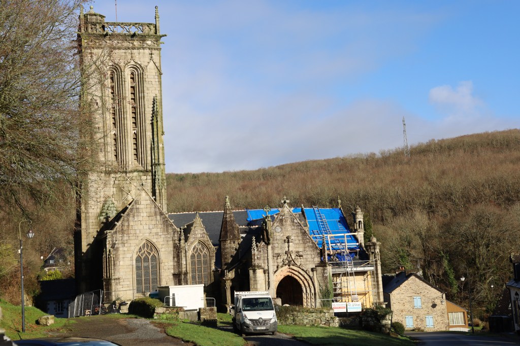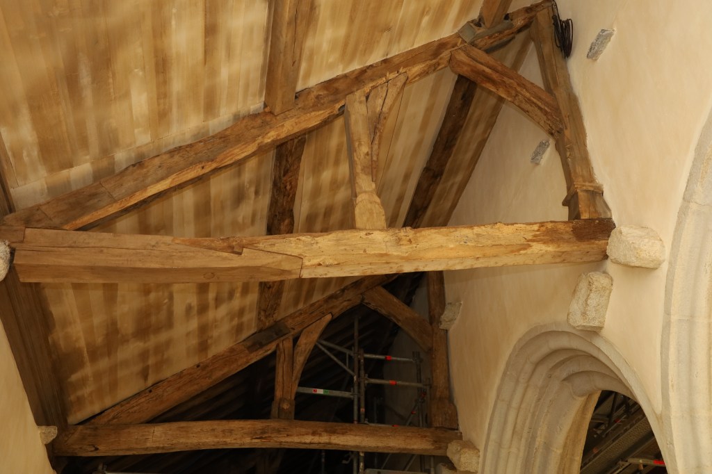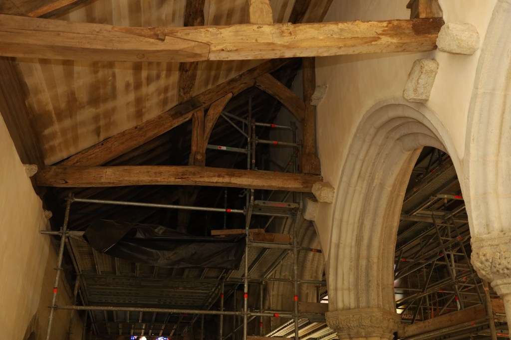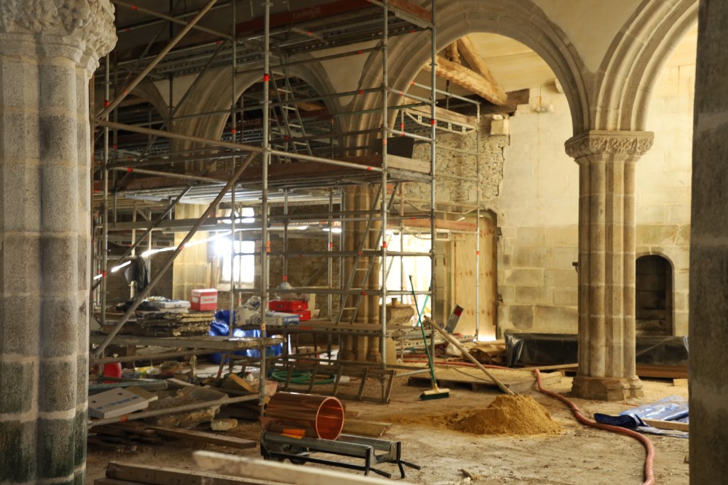 À l’extérieur, les couvreurs de Mattoenn, après avoir achevé la toiture nord, ont commencé à restaurer la partie sud-est au-dessus du chœur.