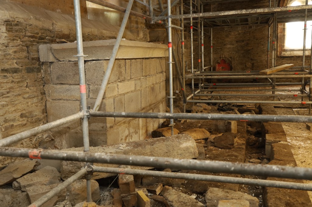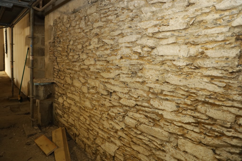 Les maçons de Grevet ont terminé le crépis du bas-côté nord-ouest et le rejointoyement d’une première série de colonnes.